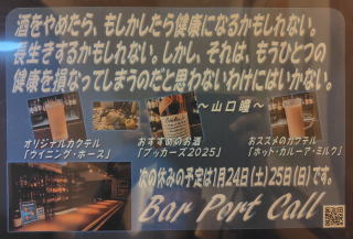 | Bar Port Callへようこそ。 今宵も素敵なお酒を片手に。 |