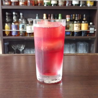 シャンボール30mlを氷を入れた10オンスタンブラーに注ぎ、クランベリージュースで割り、レモンスライスを飾る。