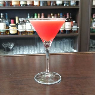 ライウイスキー30mlとレモンジュース15mlとオレンジジュース15mlとグレナデンシロップ2dashesをシェイクしてカクテルグラスに注ぐ。