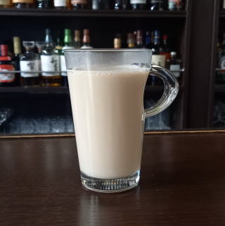 カルーア60mlと牛乳150mlをチロリで温めて、ホットグラスに注ぐ。