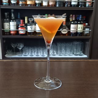 テキーラ40mlとティアマリア20mlとコアントロー1tspをシェイクして、カクテルグラスに注ぎ、レモンスライスとマラスキーノチェリーをピンに刺して、グラスの中に飾る。