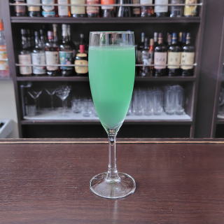 スパークリングワイン以外の材料をシェイクして、フルートグラスに注ぎ、スパークリングワインで割る。