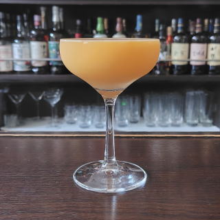 材料をシェイクして、ソーサーグラスに注ぐ。