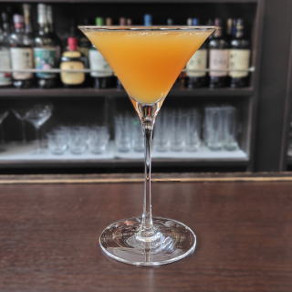 アップルブランデー、コアントロー、オレンジジュース、オレンジビターズ。