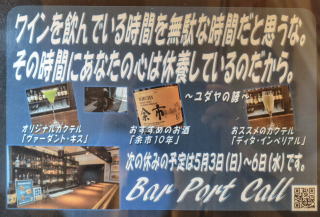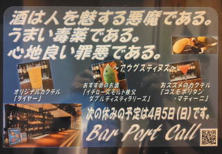 | Bar Port Callへようこそ。 今宵も素敵なお酒を片手に。 |