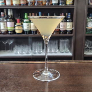 材料をステアして、カクテルグラスに注ぐ。
