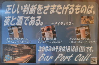 | Bar Port Callへようこそ。 今宵も素敵なお酒を片手に。 |