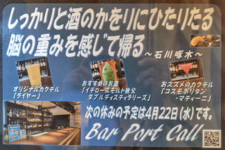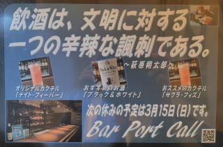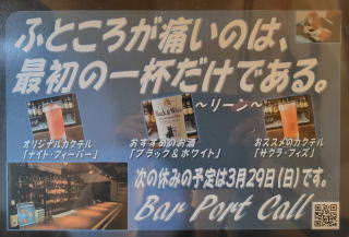 | Bar Port Callへようこそ。 今宵も素敵なお酒を片手に。 |