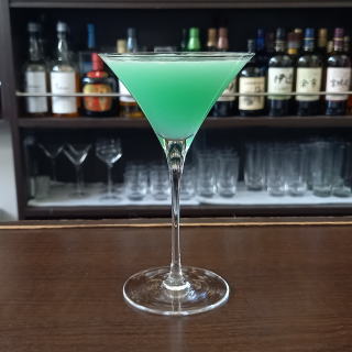 スコッチウイスキー40mlとコアントロー10mlとライムジュース10mlとブルーキュラソー1tspをシェイクして、カクテルグラスに注ぐ。