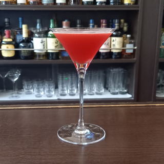 ウイスキー24mlとスイートベルモット12mlとグレープフルーツジュース12mlとグレナデンシロップ12mlをシェイクして、カクテルグラスに注ぐ。