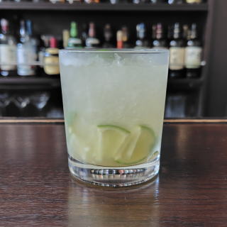 ライム2/8分をスライスして、ロックグラスへ入れて、ライムジュース15mlとシュガーシロップ10mlを入れて、ライムをつぶし、クラッシュアイスを詰めて、ピンガ45mlを注ぎ、混ぜ合わせて、ライムピールを絞りかける。